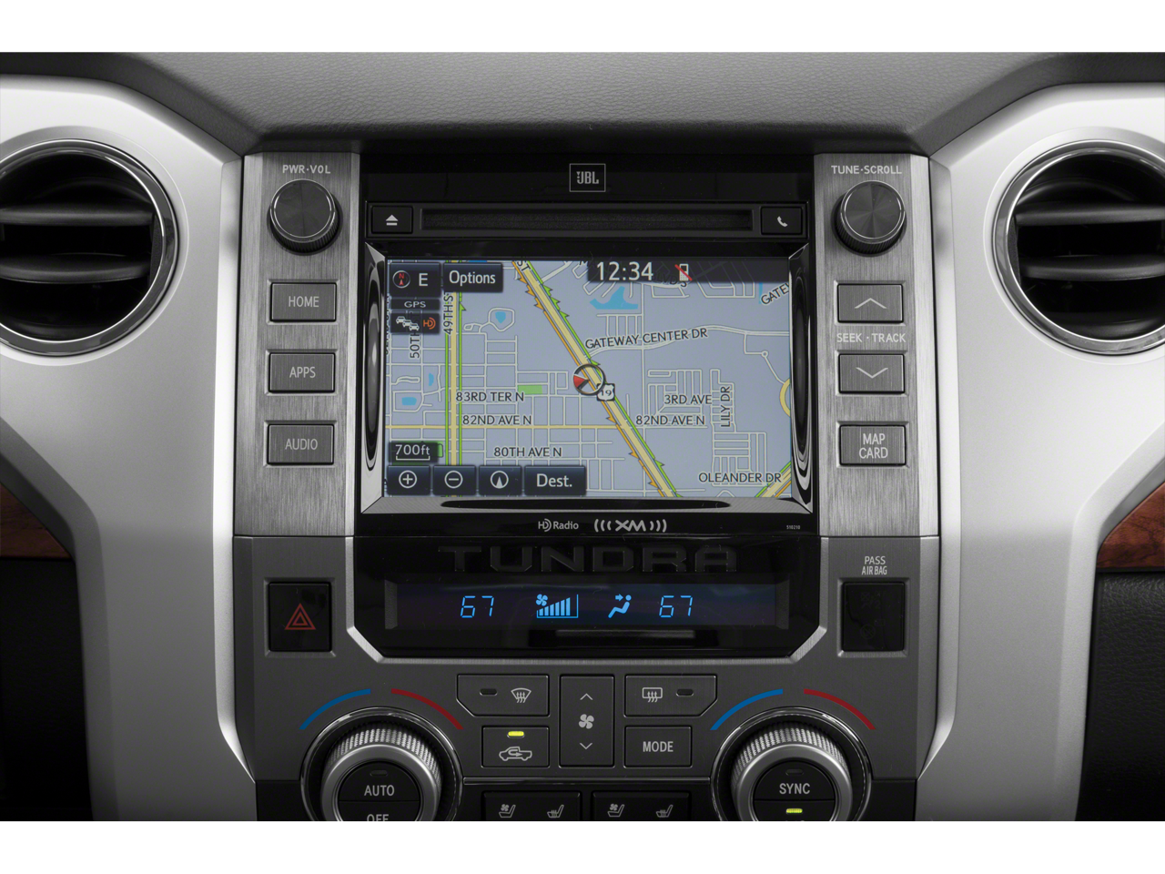 - Radio: Entune Premium w/JBL Audio & Navigation -inc: AM/FM/HD Radio, CD player MP3/WMA playback capability, integrated navigation system, AM/FM cache radio, 12 JBL speakers including subwoofer and amplifier, 7" high-resolution touch-screen display w/split-screen, auxiliary audio jack, USB 2.0 port w/iPod connectivity and control, Gracenote album cover art, HD predictive traffic and Doppler weather overlay, Bluetooth® hands-free phone capability w/advanced voice recognition, phone book access and music streaming and Siri Eyes Free, Entune App Suite, Destination Search, iHeartRadio, MovieTickets.com, OpenTable, Pandora, Yelp, Facebook Places, Slacker Radio and real-time info w/traffic, weather, fuel prices, sports and stocks, SIRIUSXM Satellite Radio, complimentary SiriusXM All Access 90-day trial subscription