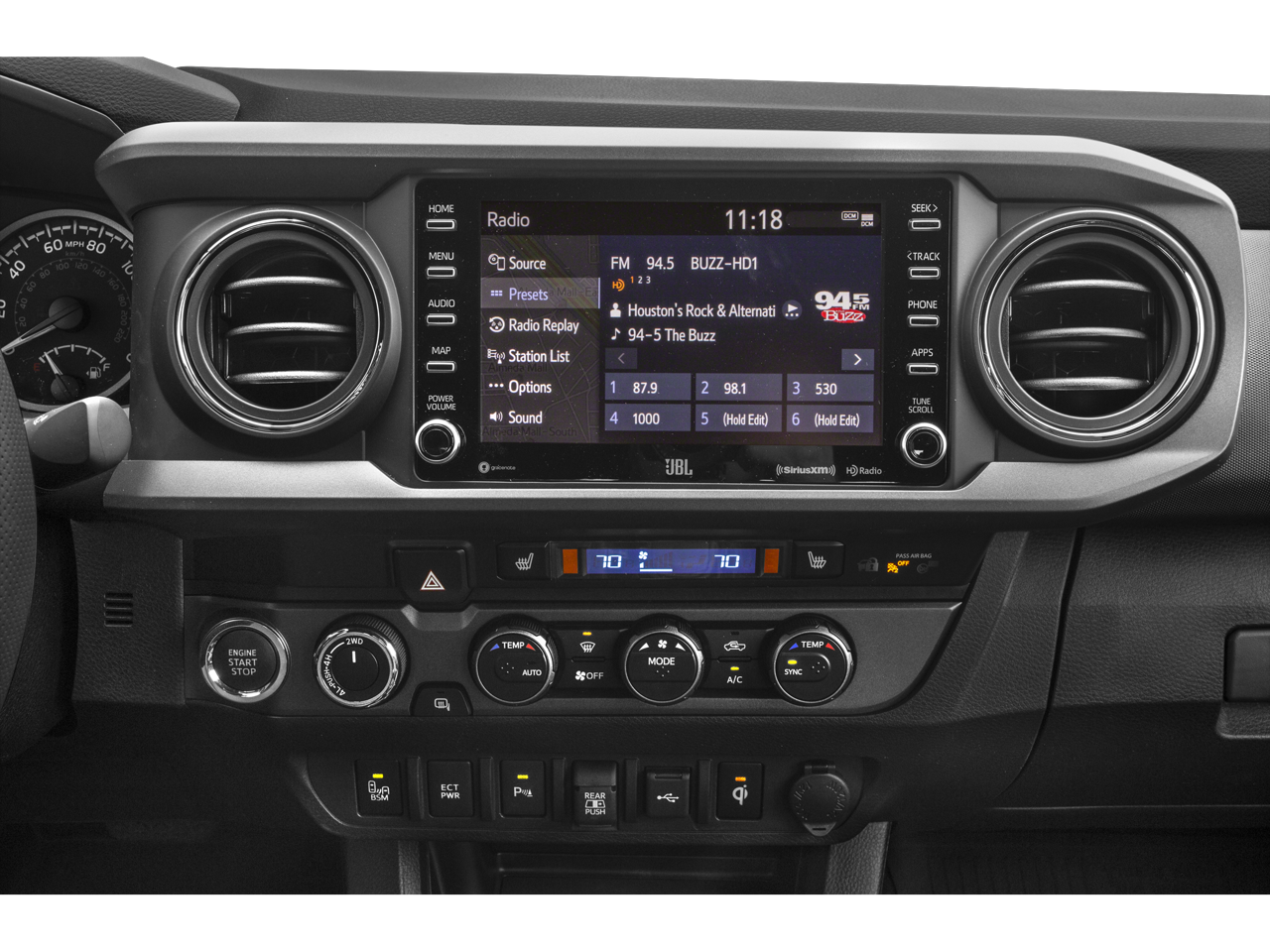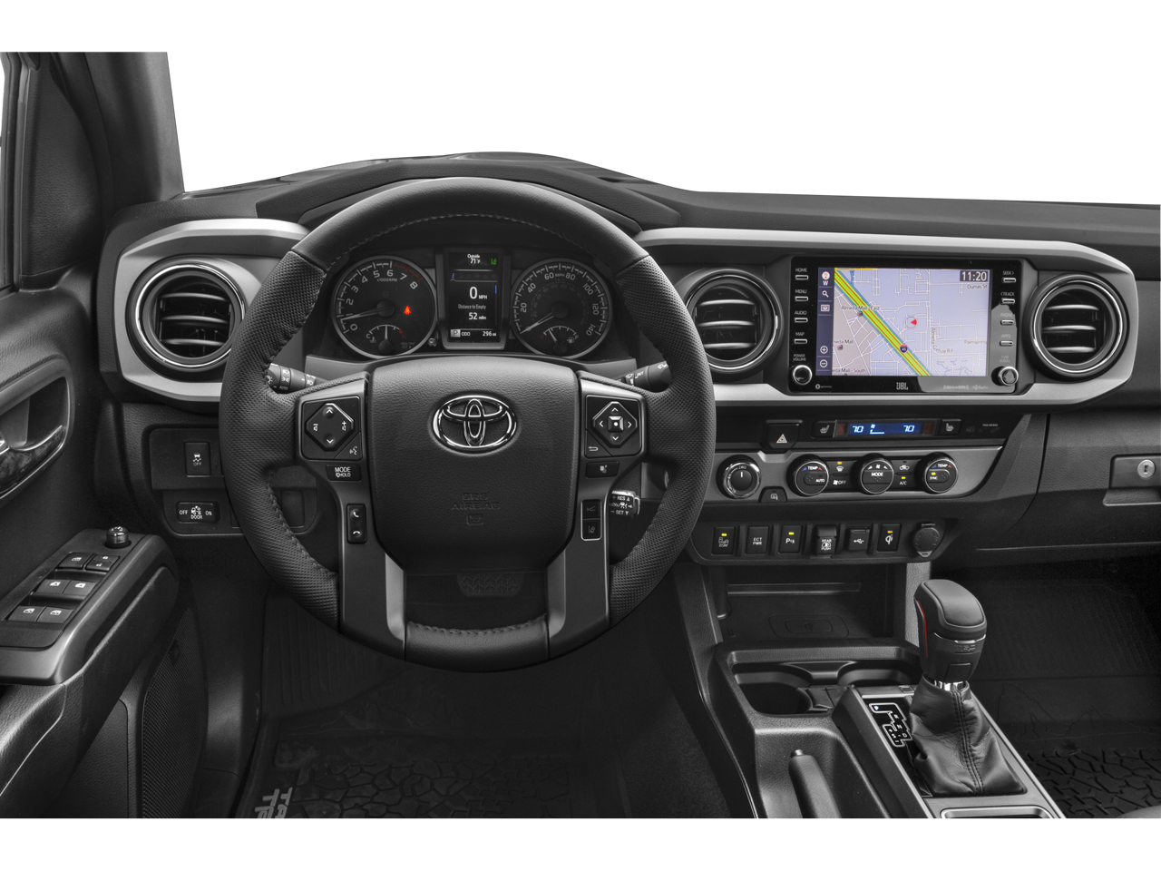 Elevate your driving experience with the TRD Premium Off-Road Package, which includes a leather-wrapped shift lever and knob, premium JBL audio system, and a power tilt/slide moonroof. Stay connected on the go with the Entune Premium infotainment system, featuring navigation, Apple CarPlay, and Android Auto compatibility.