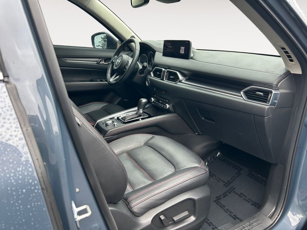 Under the hood, the 2.5L I4 turbocharged engine delivers a thrilling and responsive performance, while the 6-speed automatic transmission and all-wheel-drive system provide seamless power delivery and confident handling. With an impressive EPA-estimated 22 city/27 highway MPG, this CX-5 offers a compelling balance of power and efficiency.