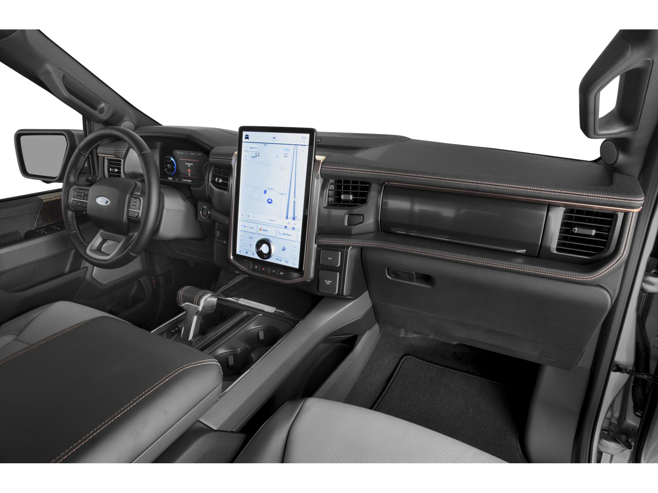 The interior of the F-150 Lightning Lariat is a testament to Ford's commitment to luxury and comfort. Enjoy the premium sound system, dual-zone climate control, and the advanced SYNC 4A infotainment system, which provides intuitive voice control and seamless smartphone integration. The heated and ventilated leather-trimmed seats, along with the heated steering wheel, will keep you comfortable in any weather.