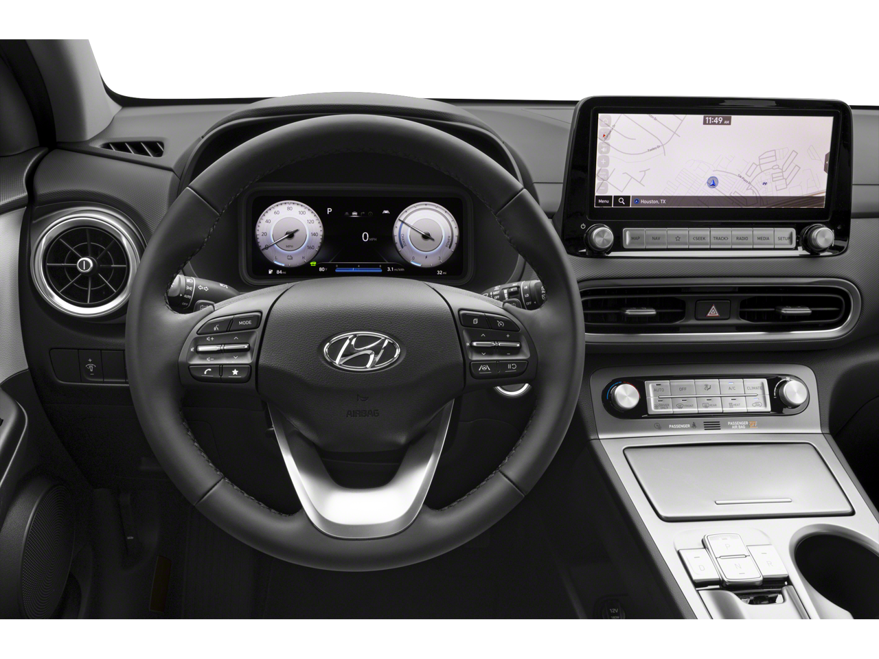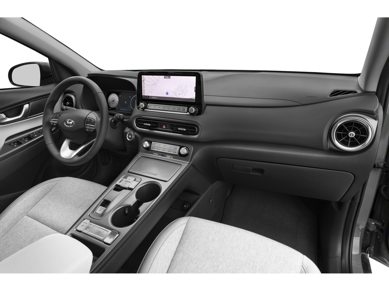 Step inside the Kona Electric SEL and experience the perfect blend of style, comfort, and technology. The spacious cabin, with its premium cloth seating and power moonroof, creates an inviting and relaxing environment, while the intuitive infotainment system and advanced safety features ensure a confident and connected driving experience.