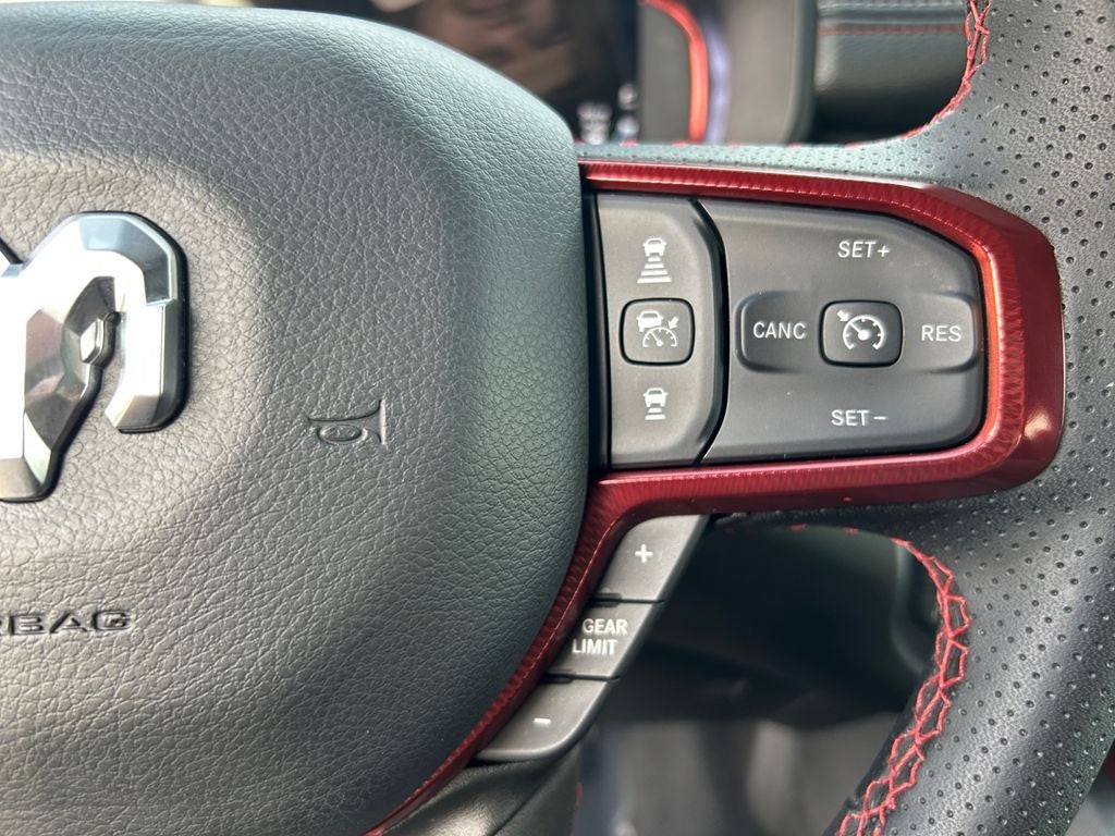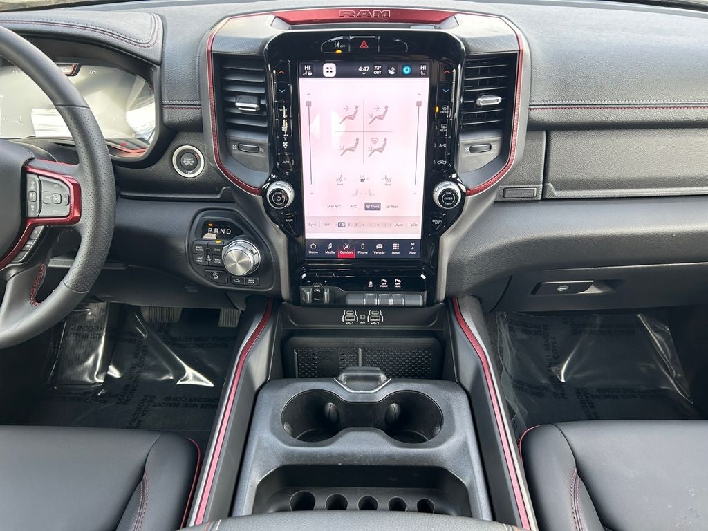 Inside, the 2026 Ram 1500 Rebel pampers you with premium amenities, including a 12-inch Uconnect 5 Navigation system, Wireless Charging Pad, and Heated Steering Wheel. The Cloth/Vinyl Bucket Seats provide all-day comfort, while the Power Adjustable Pedals and 8-Way Power Driver Seat ensure a perfect driving position.