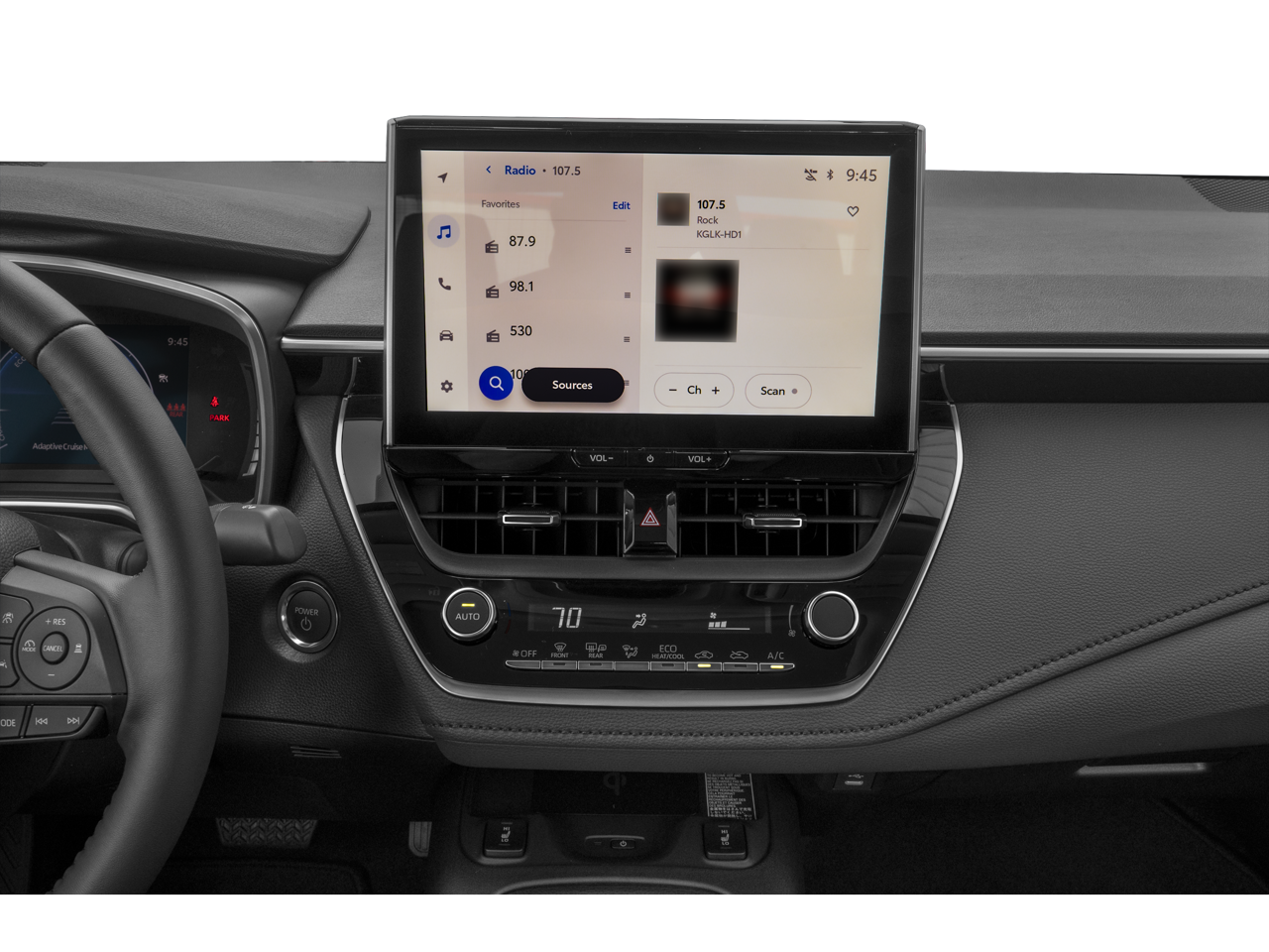 • Radio w/Seek-Scan, Clock, Speed Compensated Volume Control, Steering Wheel Controls, Voice Activation, Radio Data System and External Memory Control